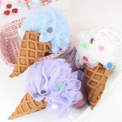 Venta caliente lindo helado forma PE malla ducha flor gama alta Bola de baño no suelta