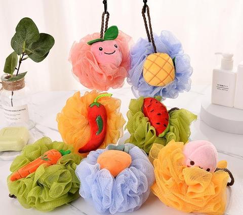 Esponja de Baño para Niños, Esponja de Ducha, Puf Loofahs, Cepillo de Malla, Bola Colorida de Dibujos Animados, Depurador Corporal, Flor de Baño Bonita